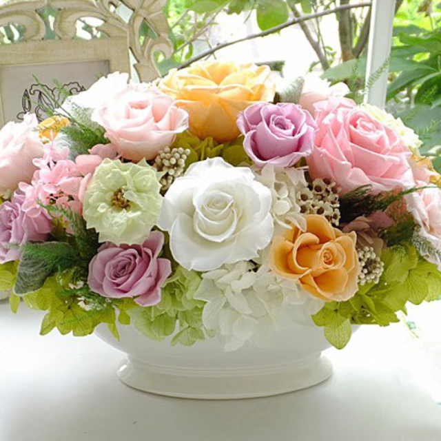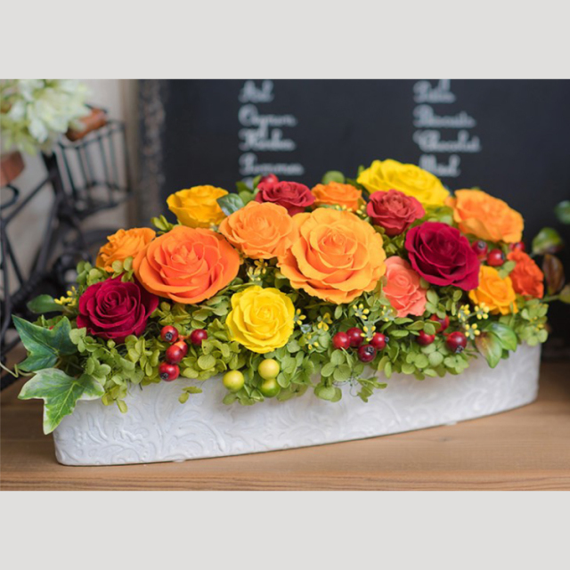 生花にプリザーブド加工という特殊加工を施すことで、色鮮やかな美しさとソフトな風合いを長期間保つことの出来る加工花です。
